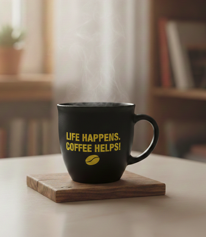 Shop our latest selection of coffee mugs with exclusive phrases and text.